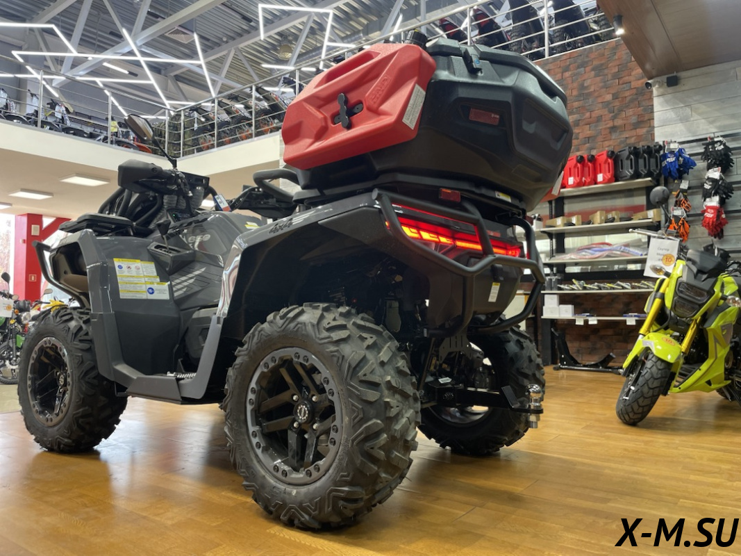 Квадроцикл адаптирован к российским условиям: большой бензобак на 22 литра гарантирует длительные поездки без частых остановок, а защита бамперов и рычагов предотвращает повреждения. В модели предусмотрены лебедка с тягой до 1,5 тонны и современная TFT-приборная панель с диагональю 7 дюймов.