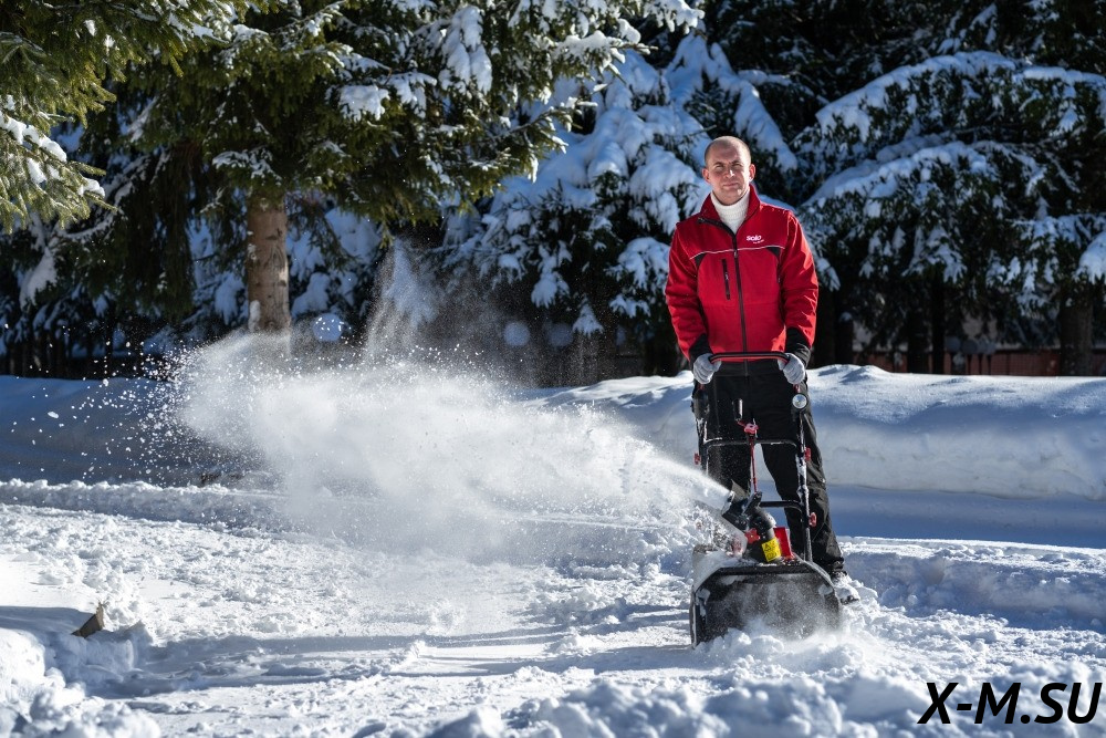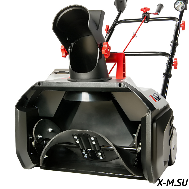 Оснащен практичным светодиодным прожектором, что позволяет чистить площадку от снега в любое время суток.